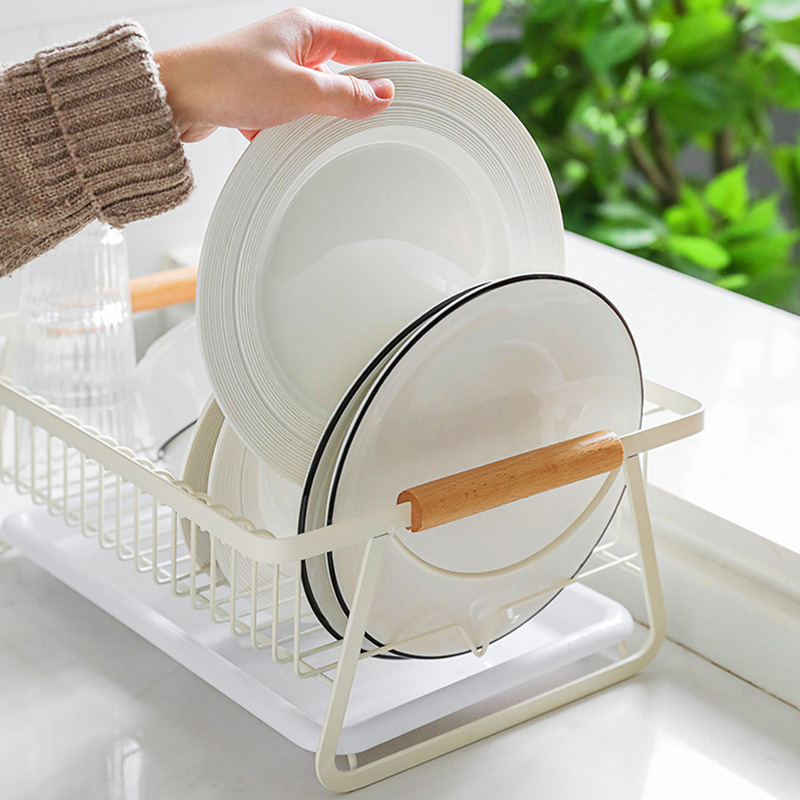 Kitchen bowl and plate storage rack, bowl and plate tableware storage rack, household utensils, chopsticks box, wooden handle, portable simple drainage rack